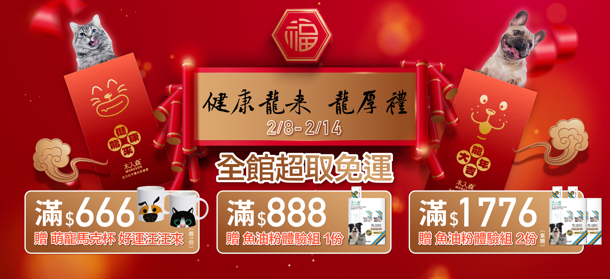 全館消費滿666贈萌寵馬克杯,滿888贈魚油粉體驗組
