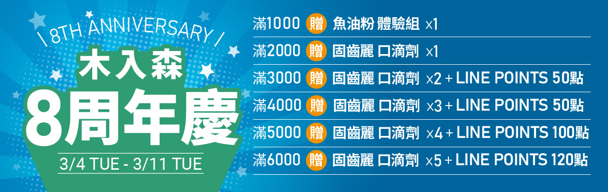 木入森 8 週年慶來襲!結帳用LINEPAY,回饋點數大放送,三重優惠說明
