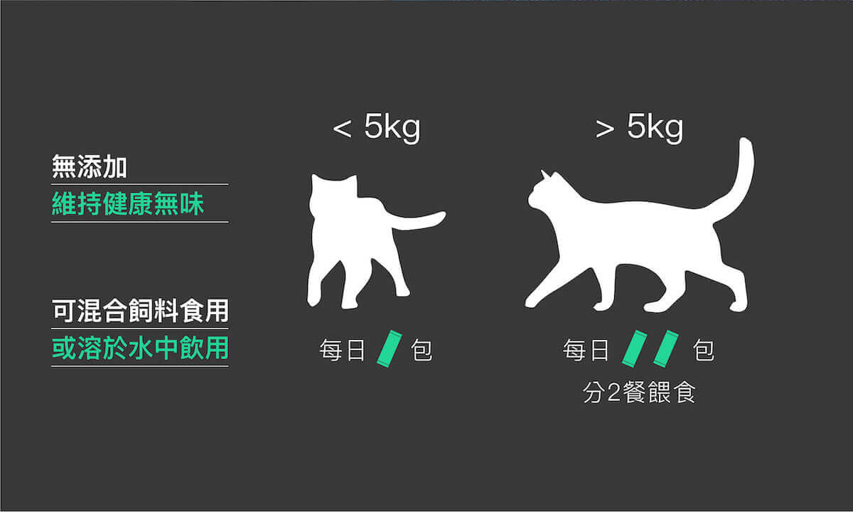 貓咪用舌頭梳理身體是天性,這個與生俱來的清潔習慣,造成貓咪吞下許多身上的毛,長時間下來結成毛球阻塞了腸胃道,嚴重可能引發毛球症。因此,生活在野外的浪浪,會自己找野草或類貓草,讓草纖維增加腸胃乳動,幫助排出毛球,至於家貓,就得靠主人餵食排毛粉。台灣第一家以犬貓分類營養保健立足市場的寵物保健營養品牌木入森營養師Tinny說明:「貓咪的日常排毛保養,建議2-3天使用1次木入森排毛粉,換毛季或吐毛狀況產生時,建議天天使用。」排毛粉的食用量與貓咪大小有關,以木入森排毛粉每包2公克為例,5公斤以下的喵咪,每日約1包,5公斤以上的貓咪,建議每日兩包,分兩餐餵食。