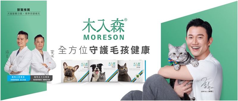 由兩位最瞭解毛孩身體健康的專業獸醫師,指定使用木入森Moreson的產品作為飼主的日常營養品,也讓產品品質多了一層保障,由影視翹楚飼主代表吳慷仁與獸醫師為品牌把關、一起守護毛孩健康。