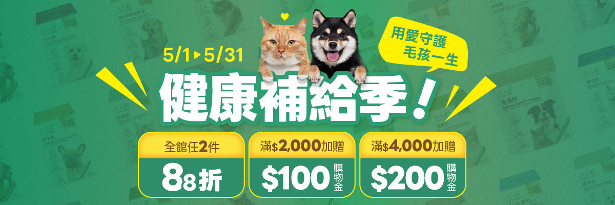 【毛孩健康補貨季】全館任兩件88折|滿$2000加贈$100元購物金、滿$4000加贈$200元購物金