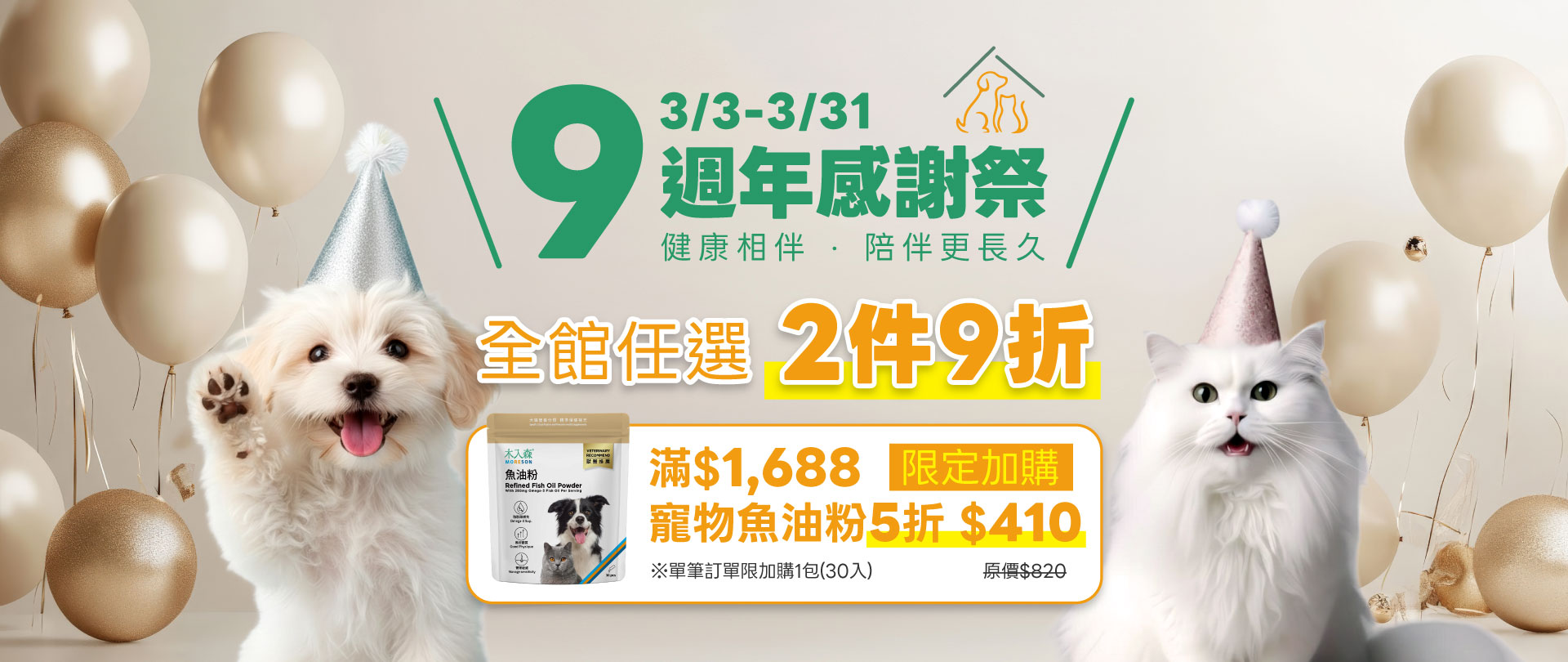 【9周年感謝祭】全館任2件9折|滿$3000加贈益生菌15包|滿$5000加贈魚油15入 (贈品擇優贈送)