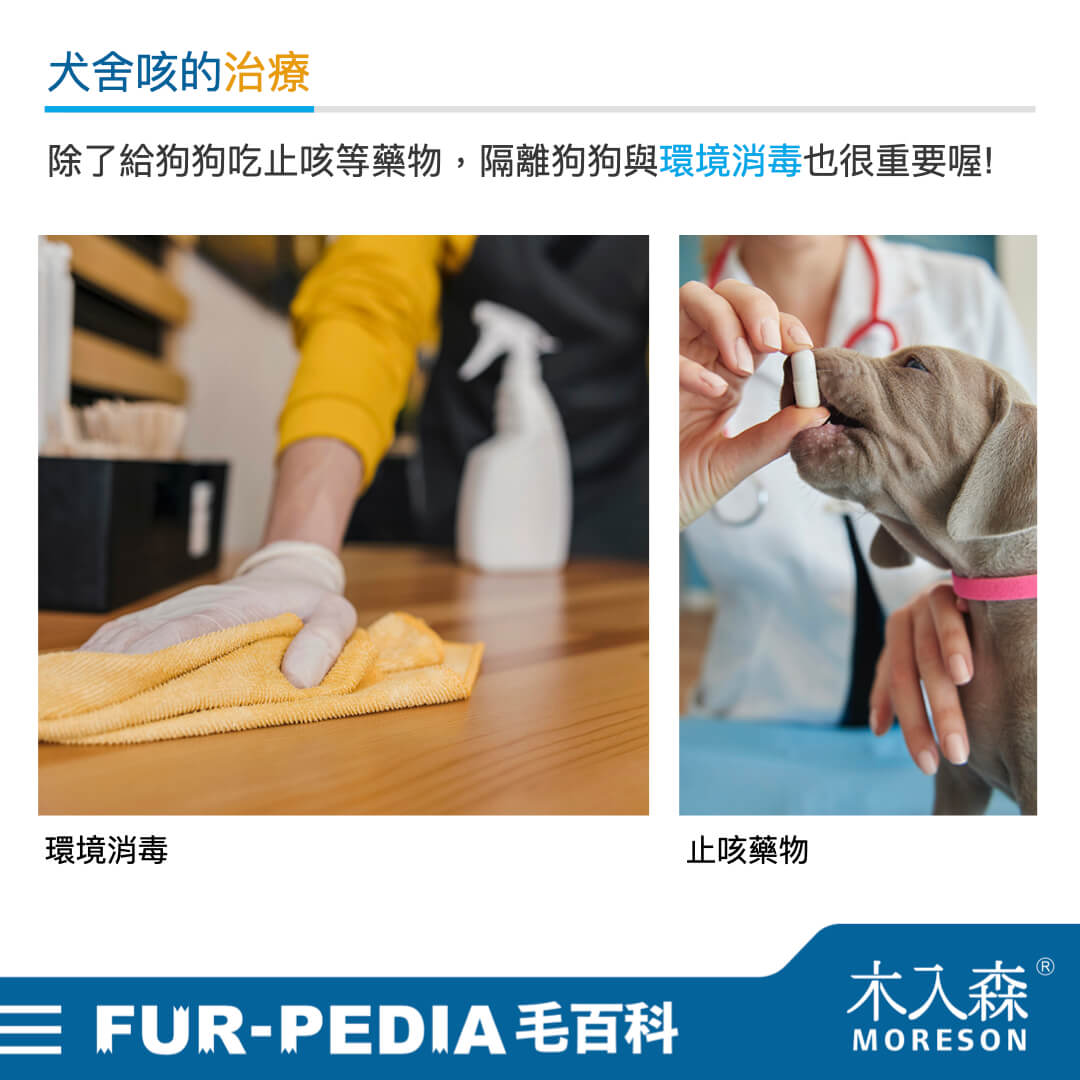 除了給狗狗吃止咳等藥物,隔離狗狗與環境消毒也很重要喔!
