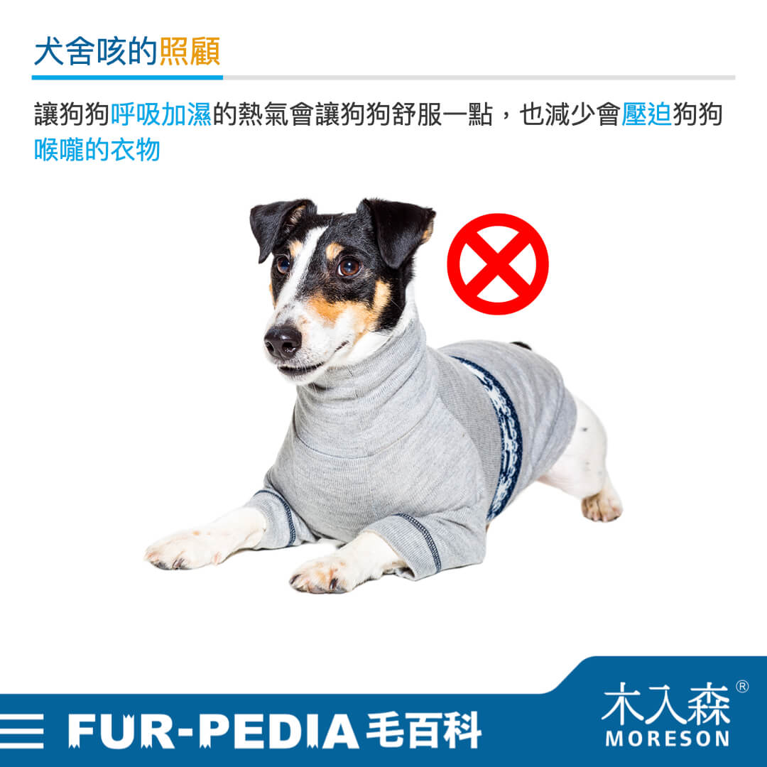 讓狗狗呼吸加濕的熱氣會讓狗狗舒服一點,也減少會壓迫狗狗喉嚨的衣物。