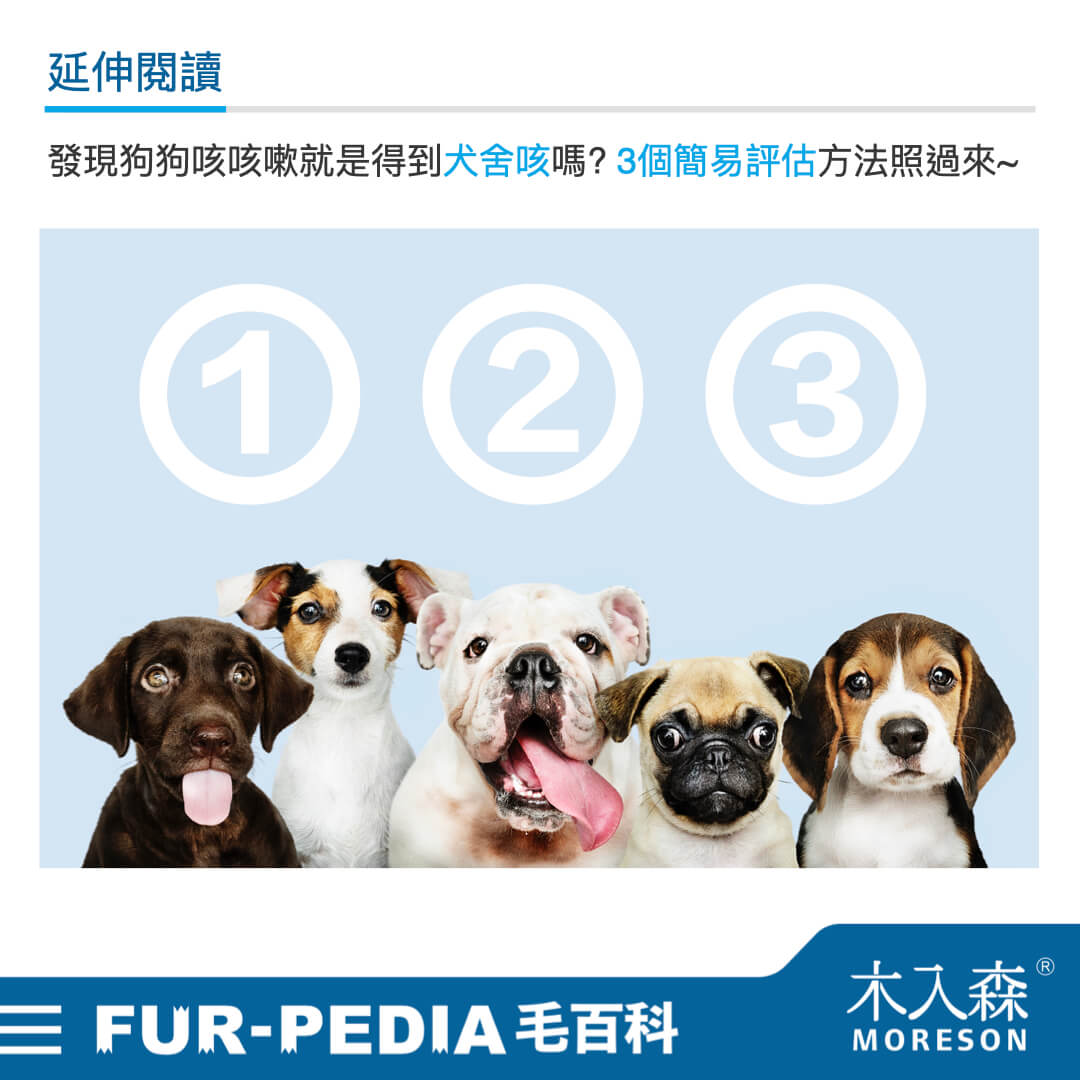 若上述都是”是”的話,那就很可能是得到犬舍咳了,建議還是帶狗狗去看醫生,可以更正確找到狗狗生病原因,並幫助狗狗早日恢復健康呦~