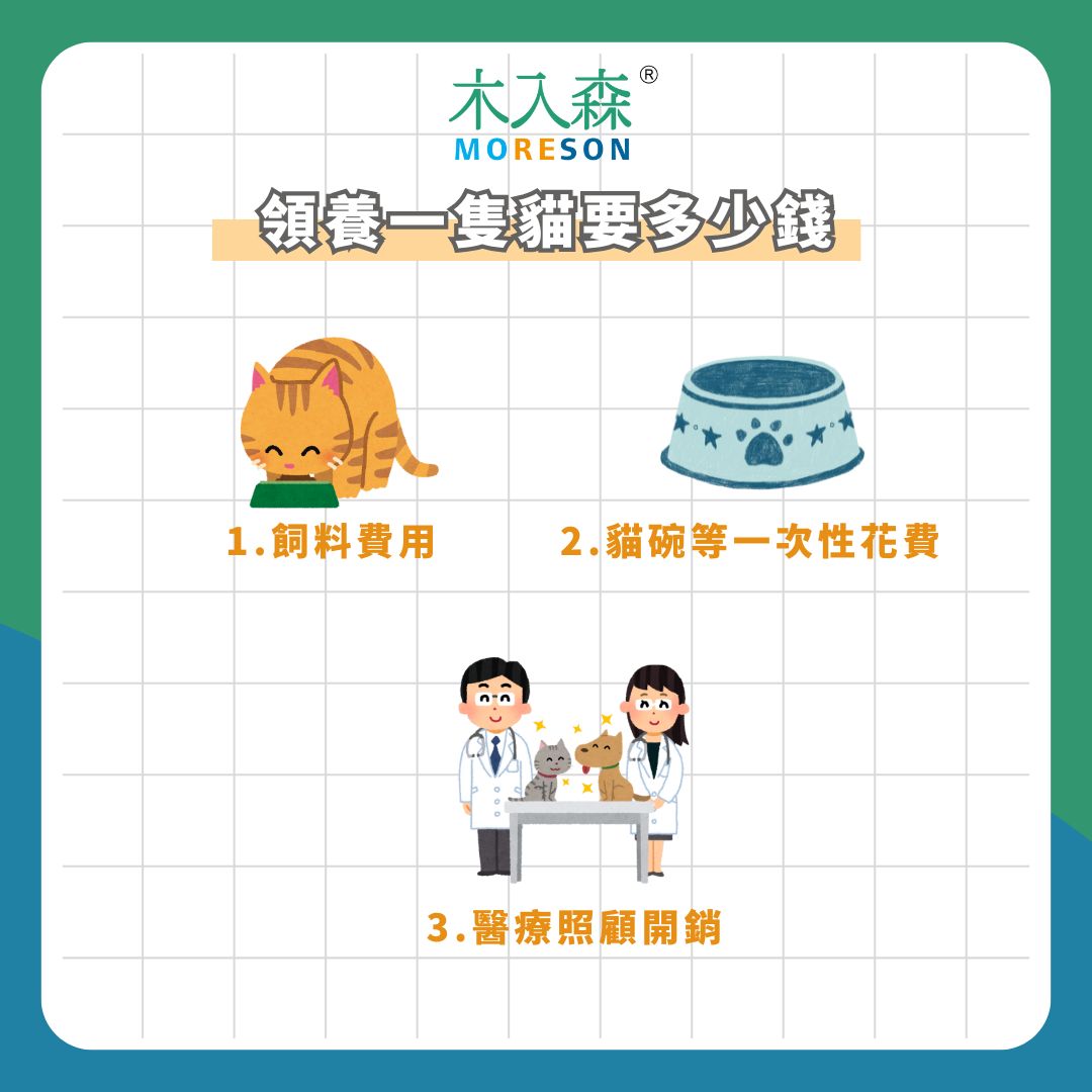 以及零食、營養品、驅蟲藥和玩具約 300 到 1,000 元,實際花費會依照貓咪的需求及飼主選擇有所不同。