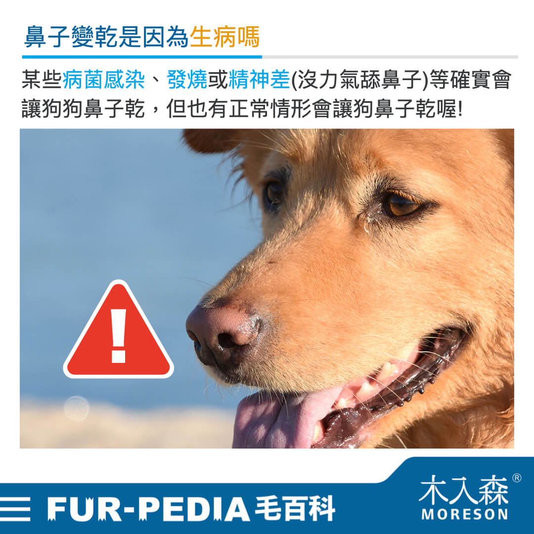 會有這樣的觀念是因為某些病菌感染確實會讓狗狗鼻子乾乾的,甚至出現裂紋,例如犬瘟熱,同時因為當狗狗生病時,可能都會伴隨發燒而蒸散鼻子水分,或精神不濟而沒力氣去固定舔鼻子等,使得鼻子呈現比較乾,才衍生出狗狗鼻子乾就是生病了這一說,但其實這不完全正確喔! 很多正常情況下,狗狗鼻子也是會乾乾的~ 參考資料[1]