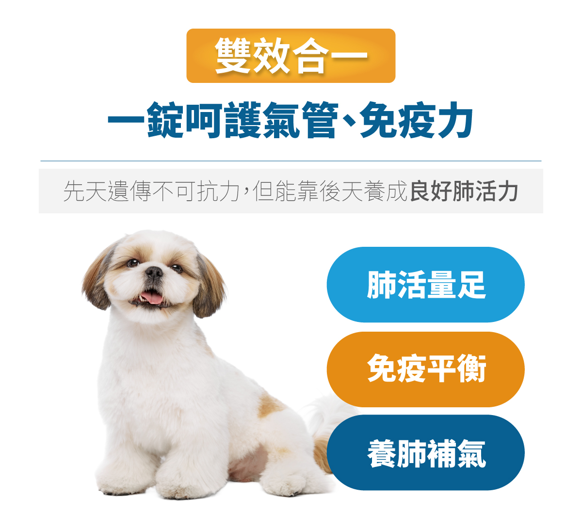 | 建議用量 | 5公斤以下狗狗每日保養0.5顆;加強1顆 5-10公斤狗狗每日保養1顆;加強2顆 10公斤以上狗狗每日保養2顆;加強3顆 使用加強劑量時建議分餐餵食 |